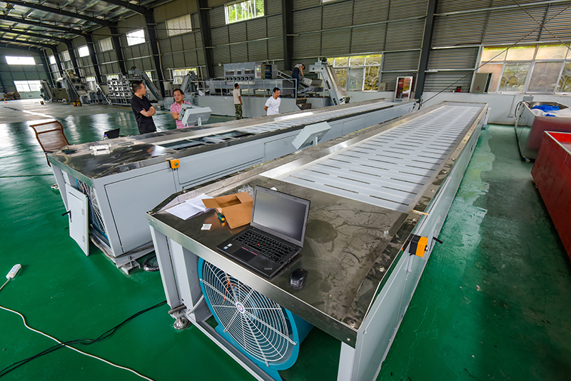 “這是一組岳西翠蘭智能化、數(shù)字化大型生產(chǎn)設(shè)備,自動(dòng)化數(shù)控完成萎凋(攤青)、熱烘、微波殺青、集成化理?xiàng)l成型、回潮緩蘇、焙干提香、風(fēng)選、色選分級(jí)、包裝等十幾套工藝流程,從鮮葉進(jìn)料到成品包裝無需人工操作,設(shè)備一鍵啟動(dòng),數(shù)字傳輸,方便又省工、省力、省心,干茶質(zhì)量明顯高于傳統(tǒng)機(jī)械設(shè)備。”7月3日,筆者來到位于岳西縣菖蒲鎮(zhèn)安徽綠月茶業(yè)有限公司采訪,在茶葉加工車間,來自浙江工業(yè)大學(xué)趙章風(fēng)博士和幾位專業(yè)工程師們正在用調(diào)試一臺(tái)一臺(tái)機(jī)組。綠月公司董事長(zhǎng)宋根全指著一排大型茶葉智能化加工設(shè)備告訴筆者,今年公司添置了這套大型自動(dòng)化智能化數(shù)字化生產(chǎn)線,主要是提升企業(yè)整體生產(chǎn)能力,降低企業(yè)生產(chǎn)成本,進(jìn)一步提升岳西翠蘭茶的品質(zhì)。